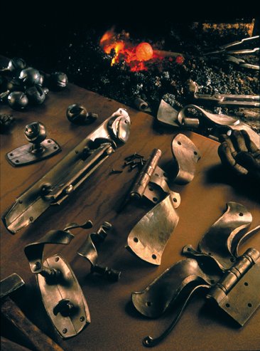 Assorted hardware in progress: forged iron. Created by blacksmith/artisan Tom Joyce, Santa Fe, New Mexico. (See Anvil Magazine interview with Tom Joyce October/November, 1999). Photo by Nick Merrick. See pages 36 - 39 of this issue for more works of Tom Joyce.