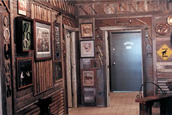 | Lee Liles points to his collection of champion horseshoe hammers, the quest of which led to his collection of tools for horseshoeing |
