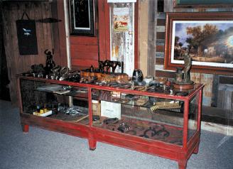 Note: Images and captions are at the end of this article. Everyone owes a part of his time and money to the business and industry in which he is engaged. No man has a moral right to withhold his support from an occupation that is striving to improve conditions. -Theodore Roosevelt Urged by this philosophy, Lee Liles can walk with visitors and explain the importance of treasured artifacts in the National Museum of the Tools of Horse Shoeing and Hall of Honor, which he describes as the largest collection of such tools in the world. It is a walk back into history and a return to the present. Horses and mules contributed a vital part to the development of America, especially in settling the West. The animals played such an important role in the American Civil War that high-ranking Union officers demanded that troops seek and destroy Southern blacksmith shops on which armies at that time depended. Soldiers in blue carried out their mission of destruction. They promoted an end to the conflict when they found and destroyed the tools that kept Confederate troops supplied with the absolute necessity of food and supplies. Complying with the order, invading Union soldiers pounded on the horn until they separated it from the anvil, thereby denying further use. And then they grabbed the much-wanted nails. As important as the blacksmith was in keeping the harness horses and pack mules safely shod, "his craftsmanship was just as vital in keeping the wheels of wagons rolling safely," Liles explained. As pioneers moved westward, one of the first businesses to appear was a hardware store with blacksmith supplies, and next a blacksmith shop. A hotel and restaurant followed, along with a Western saloon and place of entertainment, outbuildings, a livery stable, a courthouse and a jail. Other business establishments were added as the need and demand arose. The visitor finds this idea suggested in a subtle manner in the background in a spacious section of the museum. "Most blacksmiths shod horses and mules as part of their primary work with hammer, anvil, and forge," Liles explained. "Other craftsmen avoided general work of the smithy, became farriers, and limited their work to care of the animals' feet. The two most important needs of the blacksmith and farrier are hammers and anvils," he said. The latter he numbered by the dozens. One of those anvils Lee can boast about as being the largest in the world. He knows, because he designed it and had it cast, "just so I could say this museum has the largest in the world!" He can compare that enormous size to the smallest, which weighs in at 63 pounds. The cost of shipping heavy anvils by wagons was enough to encourage users in many states to design and cast their own version, using local materials if available. By tapping each with a hammer, Liles demonstrates how each anvil responds with its individual ping, ping, ping tone. Variation of sounds is made possible by the different materials and method of casting. The collection in one area of 105 anvils includes 56 designed for the farrier. One display is composed of horseshoeing anvils of less than 40 pounds. The oldest is a Fisher, cast in 1889. An English carriage anvil, which dates back to 1830-40, sports two horns, each shaped for a special need. Variations in the form of the anvil's horn make up another part of the collection, and these also were designed to serve a special need. Years ago Lee learned in competition that other craftsmen who care for the hooves of horses and mules had something he did not have. And when he learned it was a Champion farrier's hammer, he sought one. The search was so exciting he continued, and can show 27 of that favorite of all horseshoe hammers, a collection which he describes as the world's largest. The search proved so thrilling that after Lee found what he wanted, he just kept on looking. "I still thrill when I find something few others have," he said. Throughout the walk through the museum the visitor is aware of the arrangement of tools as the touch of a discriminating artist. The museum also contains two different styles of trip hammers, foot- powered and mechanical. Various sizes of hammers include a 20-pound sledge, one which would have demanded the best even of the village blacksmith who was praised by the poet Henry Wadsworth Longfellow in his well-known and nostalgic poem, "The Village Blacksmith." (See Anvil Magazine, September 2001.) In it he wrote: "And the muscles of his brawny arms are strong as iron bands." To overcome cold iron's resistance to pounding into shape, heat from the burning forge is called upon to make the metal pliable. That means a forge. Air must be forced through burning coal or coke to produce the desired heat that makes metal pliable. The first of the fire enhancers were huge bellows. When handles were pulled together, the device forced air through the forge, spurring the burning coal or coke into action. The simple device served for generations until someone developed the bellows of dual action, providing a constant flow of air. That gave way to the hand-cranked blowers. Today the operation is made efficient with the electrically powered rheostat to supply and control the flow of air to feed the fire. It speeds up the process of preparing the metal. One of the early ones on display is dual action. The bellows on display at the museum served the English smithies eons ago, but has been well preserved. And it was the roar of the bellows that attracted school children to "look in at the open door," in Longfellow's poem. In addition, many forges have been selected for display in the museum. Hundreds of tongs are included, each designed to grasp and hold a particular piece of metal. All are products of the smithy, the forge, the blower, the hammer, and the anvil. Care of the feet of horses and mules which served the cavalry demanded remedial work on extended assignments when away from camp. That meant forges and anvils had to be designed to be tak