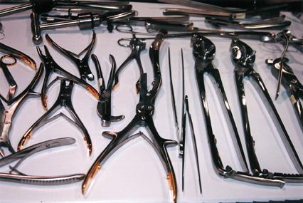 | 6. Some of the instruments of the veterinarian's trade. This array of larger instruments sell for about $150 - $200 each. |
