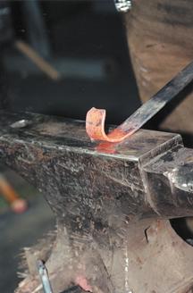 | 3. The piece is forged over the horn of the anvil. Stock is 3/16" x 1 1/4". |