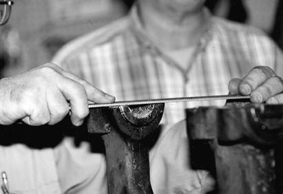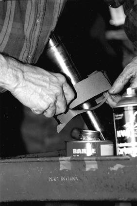| 9. Excess babbitt material is chiseled off and then filed flat using a body file. The babbitt is then finished off with a Scotch-Brite sanding material. |