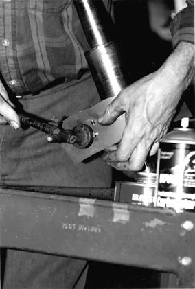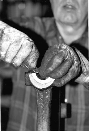 | 8. A small oxyacetylene tip is used to blend in edges of bearing and to remove some of the excess babbitt. |