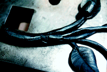 | 6. We’re welding a much bigger piece to the leaves to form a substantial stem. |