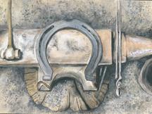 "Nail It Up," watercolor by Kathy Davis, P.O. Box 575, Knightsen, CA 94548. Phone: 925/513-3449. Reprints are available. A portion of the proceeds from all reprints purchased will be contributed to the Injured Farrier's Fund.
