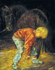 "Startin' Right" by Mary Iselin (Oil - 11" x 14") This is the third of Mary Iselin's paintings that have been featured on the covers of ANVIL Magazine. Mary's focus is equine art in oils, including farm scenes, farriery, portraits and competitive events. She can be reached at: 603/876-4036.