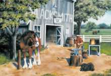 Painting of farrier Laurie Fiesler at Fiesler's Forge, Ltd, Olmsted Falls, Ohio.Artist is Renee Durkee-Atkinson, Squirrel's Next Studio, 36260 West Capel Road, Grafton, OH 44044.