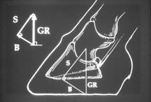 The significance of shear force was noted, meaning that when the breakover is moved back, the angle of the forces created by the weight and momentum of the horse in motion will tend to become less open (see diagram 1), so that the lines of force are better aligned with the bony column of P3, P2, P1. Using x-rays and diagrams, Dr. O'Grady illustrated clearly the necessity of learning to see inside the hoof capsule. The difference in bony alignment became quite obvious when looking at comparative x-rays with variations in the trim of the hoof that moved the breakover back. Add to this the dimension of variations in breakover created by shoes with different kinds of toes, and the impact of the fact that farriery is an art that requires a certain understanding of science really hits home.