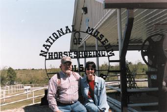 | Katherine and Jim Poor, farriers from Midland, TX, combine efforts to create a copper horseshoe while visiting the museum |