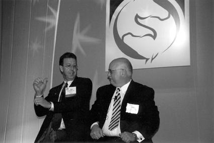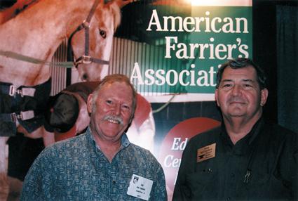 | 5. Familiar faces: Anvil Magazine's Rob Edwards with John McCutchen, Executive Director of the AFA, in the American Farriers Association booth at the AAEP trade show. |