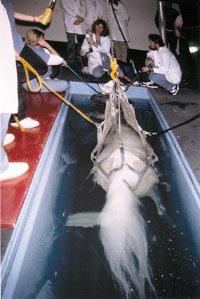 A cold rain followed by clear, crisp skies welcomed the 47th Annual Convention of the American Association of Equine Practitioners, which was held from November 24, 28 2001, in San Diego, California. The well-organized event, which was attended by some 2,200 veterinarians and another 960 guests and trade show exhibitors (around 280 trade exhibitors in all) boasted nearly 100 speakers. Many of the meetings and lectures ran concurrently at the harborside San Diego Convention Center and the adjoining San Diego Marriott Hotel and Marina. In addition to the lectures, the Association offered half- and full-day wet labs on such topics as Dentistry, Lameness Diagnosis, and Ultrasound. The wet labs were limited to a specified number of students (from 18 - 50 participants), depending on the topic. Thanks to efforts to bring the American Farriers Association into closer contact with the AAEP, the Convention is available to AFA members in good standing at the AAEP member rate ($295 for early registration, wet labs additional). At the event I saw several farriers whom I knew, some attending just for the day, others attending the conference. There was a large international contingency of some 150 or so, and it was interesting to stop someone with an international marker on their nametag and see where they hailed from and exchange a few words. The day began early as informal "Sunrise Sessions" were held at 6:45 am. There was a long line of people who had not pre-registered for the event attempting to book a last-minute breakfast seat. The event took place in a fully packed, loudly buzzing room of large round tables; one topic was discussed at each table, with a moderator leading the discussion. At lunchtime, there were over a dozen "Table Topic" discussions in separate rooms of the Convention Center, highlighting a particular topic. My only regret was that there were several meetings being held concurrently that I would have liked to have attended. In addition to the professional conference, there was a special one-day event just for horseowners called "Horseman's Day." Some of the topics included: "Nutrition for the Lifetime of Your Horse," "Colic, California-style," and "What's New in the Ongoing Struggle Against Founder." About 250 horseowners attended for a $45 fee. They learned about the event by invitation of their veterinarian, who were sent flyers to distribute to clients in advance of the event. The horseowners I spoke with seemed to enjoy it. I stopped in to see the slides on laminitis with Dr. Bill Moyer. The images were reminiscent of what I have seen at the Bluegrass Laminitis Symposium, as Dr. Moyer successfully explained the disease in layman's terms. Certainly much of the information presented during the lectures was over my farrier head, such as: "How to Select and Fit a Breeding Dummy Mount for Stallions" and "How to Perform a Primary Closure Castration Using an Inguinal Incision." But there were a fair amount of lectures that did apply to our occupation, and those were the ones I sought out, along with some important health information for horseowners. West Nile Virus At one of the opening presentations, The Kester News Hour, presented by Dr. John Madigan of UC Davis and Dr. Larry Bramlage of Kentucky, addressed brief subjects of current health concerns. One important reminder was about the West Nile Virus. This virus is spread primarily through mosquitoes feeding on infected birds; the horse is considered an incidental infection or a dead-end host (this means you cannot get the disease from a horse); humans are also affected, however. So far this year from June until mid-October, there have been 416 confirmed equine cases in 19 states; of these, 24% of the affected horses died or were put down. In Florida alone, there were 32 equine deaths. The infection began on the East Coast, and as the birds migrate-like the killer bee-they are on a broad sweep across the country. Some experts have warned that perhaps the infected birds are estimated to migrate to California by summer/fall of 2002, or at the latest 2003. Recent evidence suggests that the species of West Coast mosquitoes are able to transmit the virus with even greater efficiency than those on the East Coast. Therefore, it will be important to begin a prevention program against the virus. Fortunately, Fort Dodge has made a vaccine: two intermuscular doses are to be given at an interval of three weeks apart. So far over a million doses have been distributed and no serious reactions have been reported. Another interesting tidbit was information on the growing resistance of some bacteria to antibiotics, now even a consideration in horses. The topic was salmonella. It turns out, like tetanus, salmonella lives with us daily. Normal-appearing horses can carry low levels of salmonella. A colicky horse can shed salmonella from its stool when under stress, especially during periods of diarrhea and an extended hospital stay. This can transmit the infection to other horses. Bleach and water (1:32 ratio, 5.25% solution) remains the disinfectant of choice for cleaning stalls, trailers and other areas. Unfortunately, many strains of salmonella show antibiotic resistance. In fact, there has been a concern in public health about human antibiotic resistance for some time. In a recent study done on ground beef purchased from supermarkets, it was determined that 20% was contaminated with salmonella and 84% of the beef tested proved to have some degree of resistance to antibiotics. A staggering 24.6 million pounds of antibiotics are used in the meat industry per year for non-therapeutic use. (For prevention in feedlots, animals raised for meat are routinely fed low levels of antibiotics in their feed.) In comparison, two million pounds of antibiotics are used for therapeutic purposes in animals and three million pounds are used for therapeutic purposes in humans per year. Chickens were also tested from off the supermarket shelves; of the 407 chicken