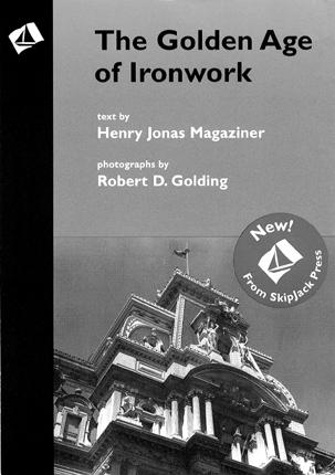 I have been fortunate enough to get my hands on a pre-publication copy of the latest book from Skipjack Press, and, as usual, publisher Jack Andrews has made a significant contribution to the world of architectural ironwork with the publication of this book. It examines ironwork from a unique perspective. It's about a specific place: Philadelphia, Pennsylvania, and a specific time - roughly 1840 to 1930. However, it is not about a specific technique. There is a lot about cast iron in this book as well as forged iron. It's more about the context in which architect-ural iron was used, both cast and wrought, and how examples of the iron worked with the houses and buildings where it was placed. Before reading this book, I looked down on cast iron as a poor substitute for blacksmithing. In today's world, that opinion may be debatable, but after reading this book, I've changed my views. I will never look at cast iron the same way again. The examples of early iron casting shown in this book are works of art in the truest sense. Throughout the book are examples of how the ironwork enhances and supports the architecture, both cast iron and wrought iron, and why the iron works. For example, the author examines the symbolism found in a cemetery gate detail, complete with cast weeping willow tree, doves, and lambs, and explains that it was used as a typical Victorian image for the grief of family members. The information about casting is most interesting; at the same time, there is no shortage of wrought iron examples here. Many photographs of Yellin's work in Philadelphia are included which is logical, since Philadelphia was the home of Yellin's Art Street studio for so many years. There are many examples of railings and gates by other unknown blacksmiths as well, all in high-quality images by photographer Robert Golding. The 168 photographs are logically catalogued in the back of the book. There is also a glossary; the book's research is documented with references, a bibliography is given, and it is indexed. These details help the book serve as a valuable research tool. I can strongly recommend this book; the approach is unique, the commentary informed, and the examples are beautiful. It would make a wonderful Christmas present for someone whose interests lie in the field of ironwork. Return to the December 2000 Table of Contents Return to the Book Reviews Page