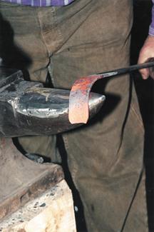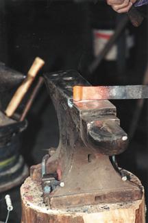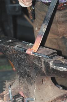 | 3. The piece is forged over the horn of the anvil. Stock is 3/16" x 1 1/4". |