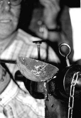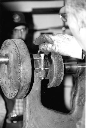 | 6. The babbitt material is melted in the cupola. Beeswax is used as a flux to mix old and new babbitt. Do not overheat babbitt. |