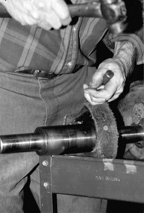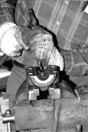 | 9. Excess babbitt material is chiseled off and then filed flat using a body file. The babbitt is then finished off with a Scotch-Brite sanding material. |